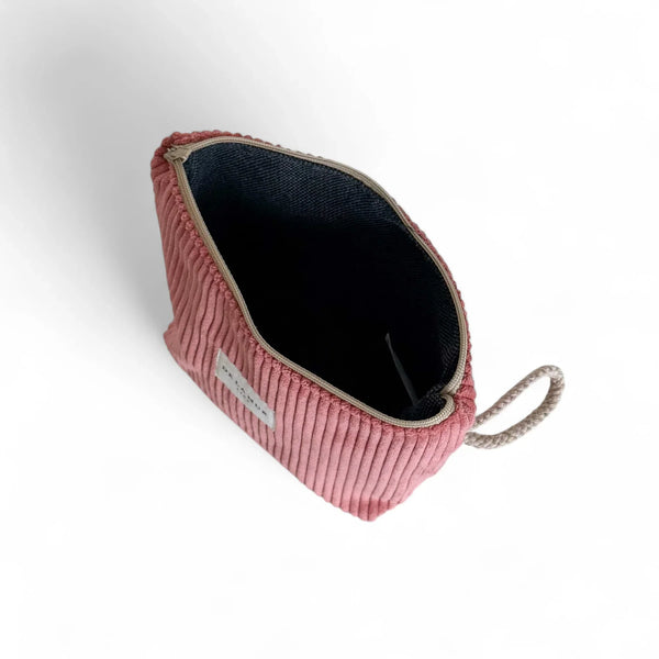 Deze Beauty Bag van de La Mur Line, ook wel toilettas of make-up tas genoemd, is uitgevoerd in een koraalkleurige corduroy ribstof.
