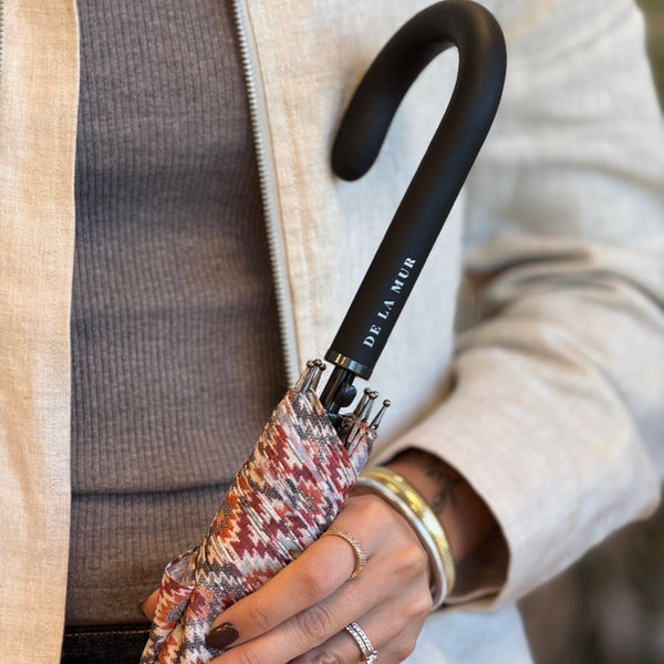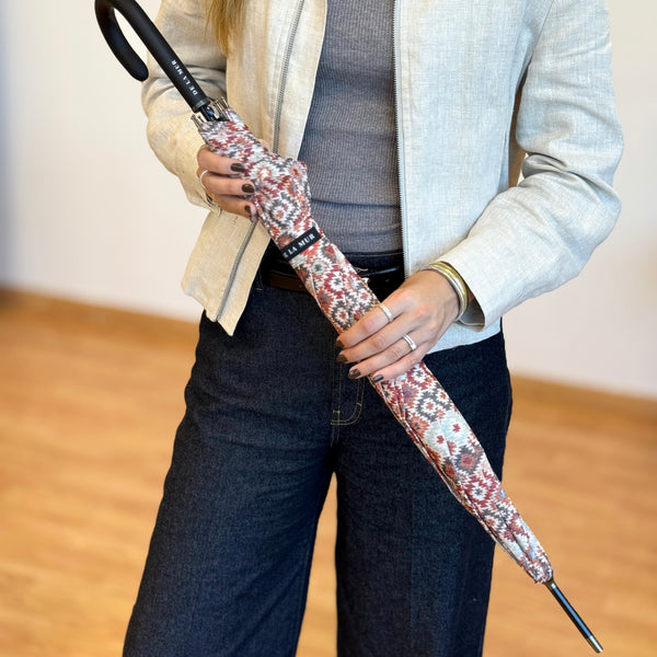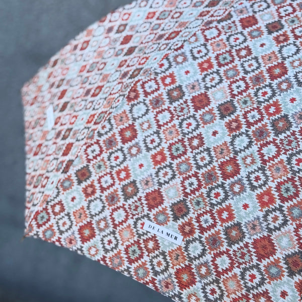 Deze set bestaat uit de Grote Shopper en de bijpassende Paraplu, beide uitgevoerd in hetzelfde elegante ruitpatroon in warme tinten van roestbruin, rood-oranje, beige en lichtblauw. Perfect op elkaar afgestemd, zo ga je altijd in stijl de deur uit – ook als het regent.