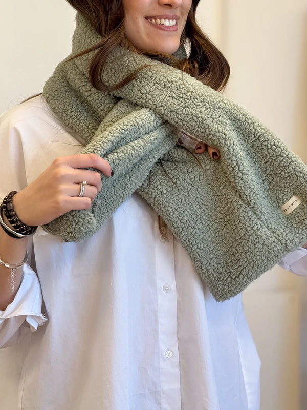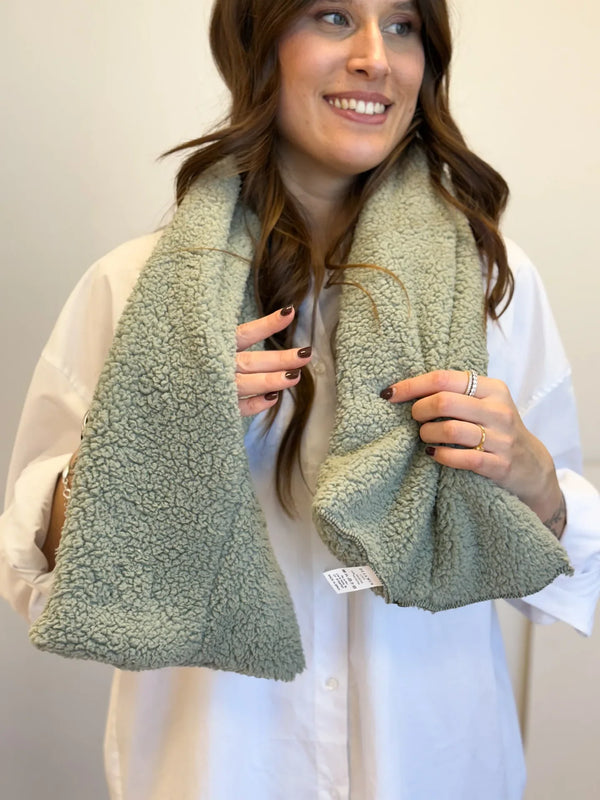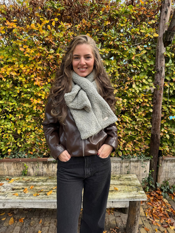 Dankzij het handige ontwerp steek je het uiteinde eenvoudig door de opening waardoor de sjaal mooi op zijn plaats blijft zitten. Deze korte teddy sjaal is compact, zacht en warm - een elegante winteraccesoire die comfort en stijl perfect combineert.