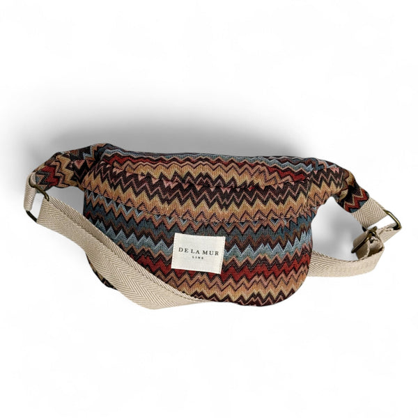 Dé musthave in je tassencollectie: de heuptas! Dit hippe heuptasje van de La Mur Line, ook wel fanny pack genoemd, is uitgevoerd in een dikke jacquardstof met een kleurrijk zigzagpatroon in warme tinten zoals roest, oker, oudroze, blauw en bruin.