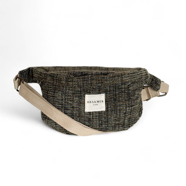 Dé musthave in je tassencollectie: de heuptas! Dit hippe heuptasje van de La Mur Line, ook wel fanny pack genoemd, is gemaakt van een dikke meubelstof met een grove, goed zichtbare structuur in kakitinten.