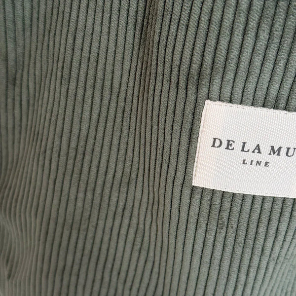 Deze unieke ovale shopper van de La Mur Line, ook wel bekend als halve maan shopper, is uitgevoerd in een donkergroene corduroy ribstof.