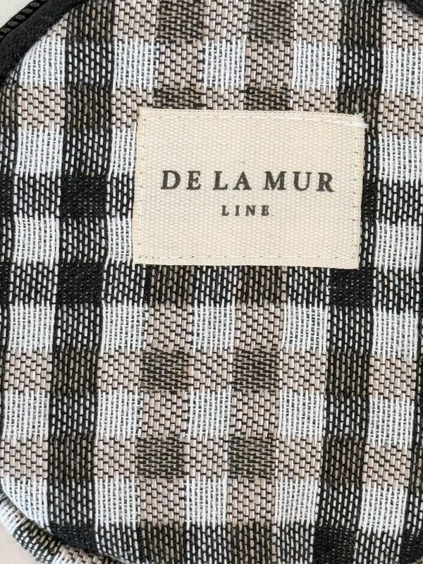 Dit speelse, ronde portemonneetje van de La Mur Line is uitgevoerd in een dikke jacquardstof met een ruitjespatroon in beige en zwarttinten. Elk item kan variëren in patroon, afhankelijk van hoe het is uitgesneden.