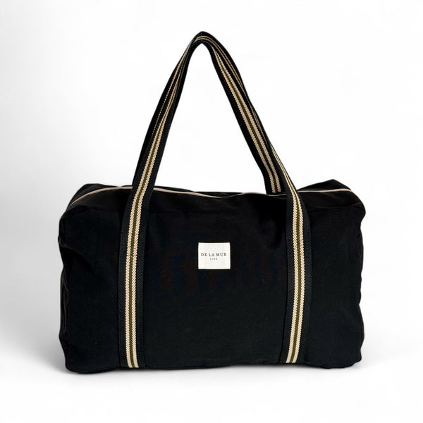 Deze stevige en ruime sporttas van de La Mur Line, ook wel duffeltas of duffle bag genoemd, is uitgevoerd in een dikke, zwarte effen stof.