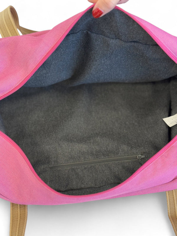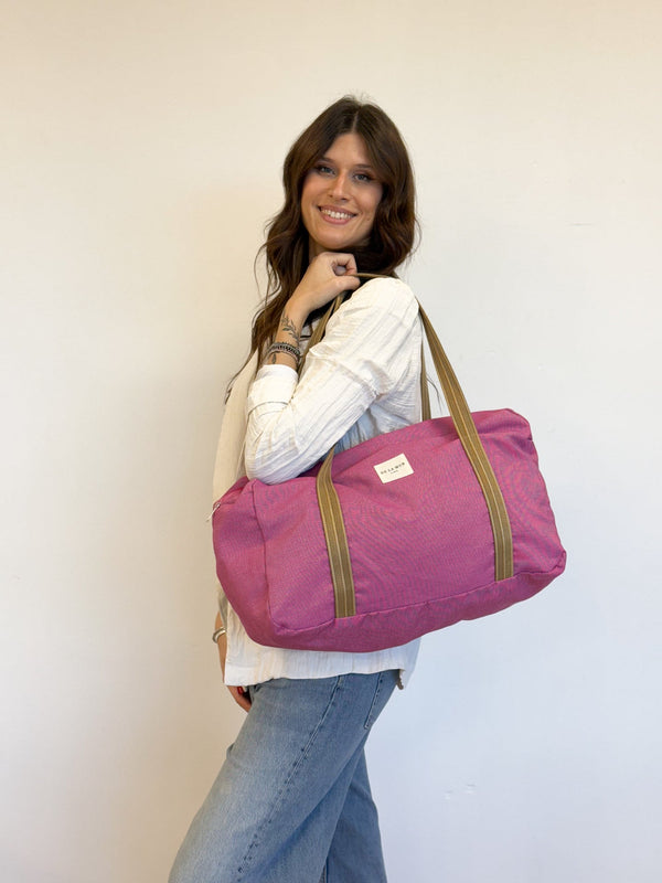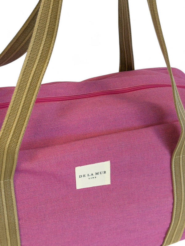 Deze stevige en ruime sporttas van de La Mur Line, ook wel duffeltas of duffle bag genoemd, is uitgevoerd in een dikke, roze effen stof.
