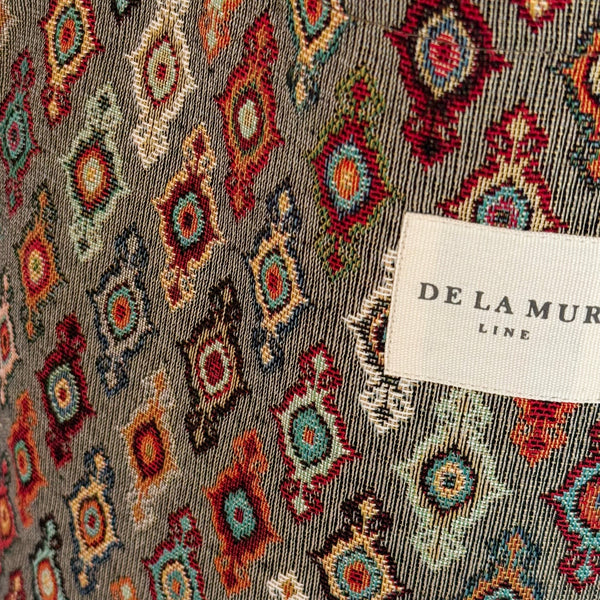Deze shopper van de La Mur Line is uitgevoerd in een dikke jacquardstof met een ruitmotief in warme tinten zoals grijs, roest, donkergroen, oker en turquoise.