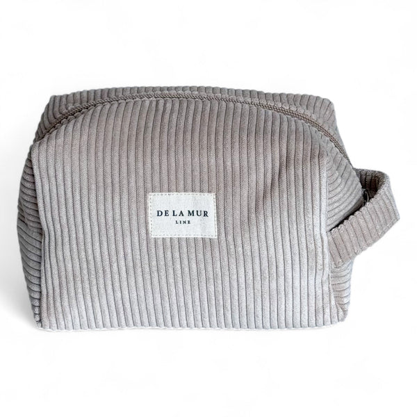 Diese Beauty Bag aus der La Mur Line, auch Kosmetiktasche oder Make-up-Tasche genannt, ist aus beigefarbenem Cord-Rippstoff gefertigt.