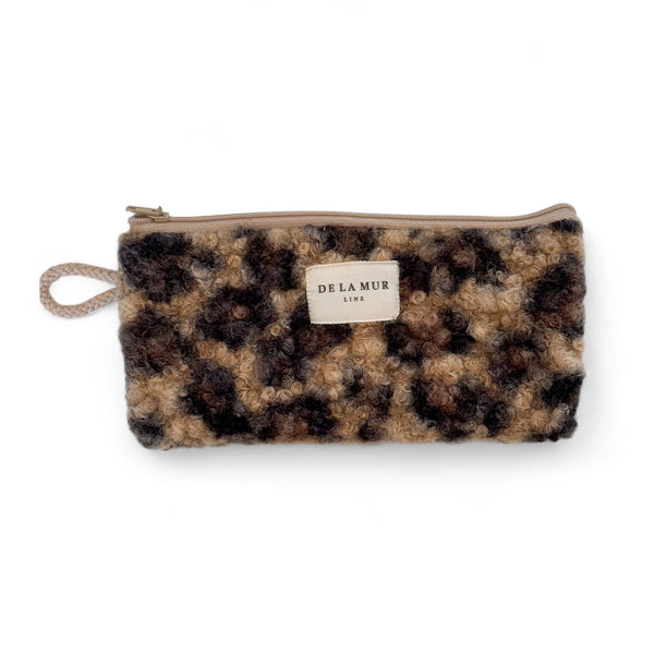 Dieses niedliche Brillenetui von La Mur Line, auch Brillenfutteral oder Brillenbeutel genannt, ist aus einem dicken Teddy-Stoff mit Leopardenmuster gefertigt.
