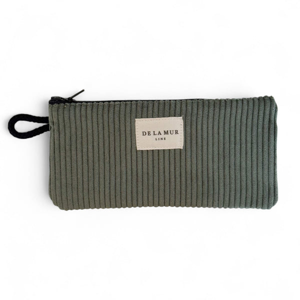 Dieses hübsche Brillenetui von La Mur Line, auch Brillenbox oder Brillenbeutel genannt, ist aus dunkelgrünem Cord gefertigt.