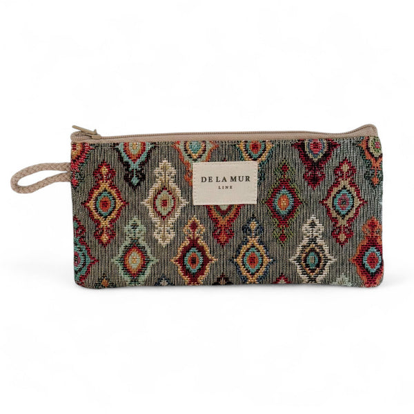 Dieses hübsche Brillenetui der La Mur Line, auch Brillenbox oder Brillenbeutel genannt, ist aus einem dicken Jacquardstoff mit einem Karomuster in warmen Farben wie Grau, Rost, Dunkelgrün, Ocker und Türkis gefertigt. Jedes Stück kann im Muster variieren, je nachdem, wie es zugeschnitten wurde.
