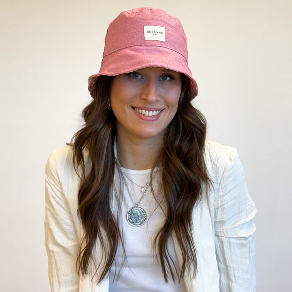 Dieser trendige Bucket Hat von La Mur Line, auch Eimerhut oder Fischerhut genannt, ist eine echte Bereicherung für Ihre Sommergarderobe. Dieser Bucket Hat ist aus einem feinen, einfarbigen rosa Stoff gefertigt.