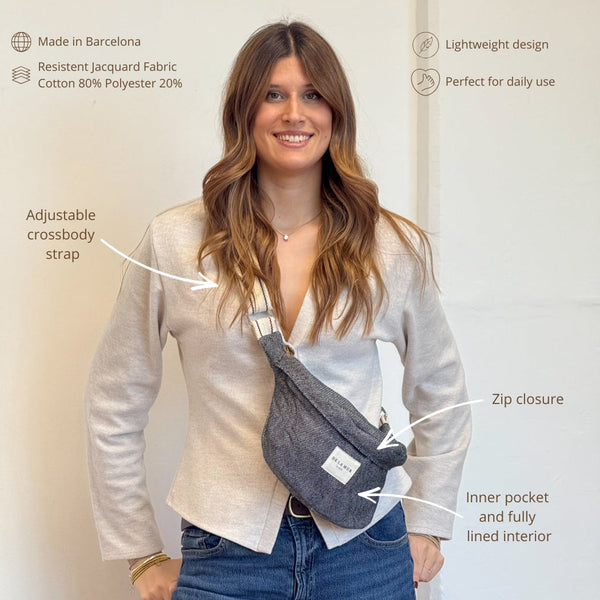 Das Must-have in Ihrer Taschensammlung: die Bauchtasche! Diese trendige Bauchtasche aus der La Mur Linie, auch bekannt als Gürteltasche, ist aus einem melierten anthrazitgrauen Jacquard-Stoff gefertigt.