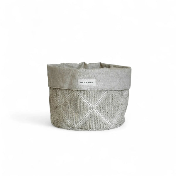 Dieser Aufbewahrungskorb von De La Mur Line besteht aus einem Jacquardstoff mit einem geometrischen Muster in Creme- und Beigetönen. Die Innenseite ist mit einer beschichteten Schicht versehen, die leicht zu reinigen ist.