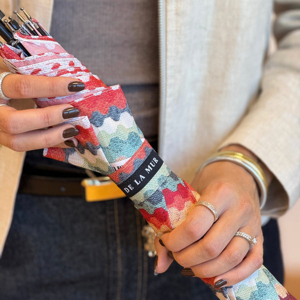Dieser elegante Regenschirm von De La Mur Line besticht durch ein rhythmisches, wellenförmiges Muster in farbenfrohen Streifen. Er ist im gleichen Design wie unsere Taschen und Accessoires gehalten, sodass Sie auch bei Regen immer perfekt gestylt aus dem Haus gehen.
