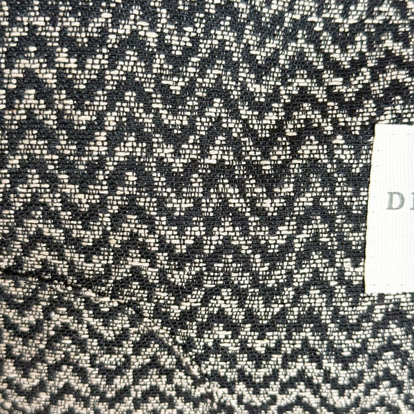 Diese kleine Umhängetasche von La Mur Line ist gefertigt aus einem dicken Jacquardstoff mit einem Zickzackmuster in Schwarz und Beige.