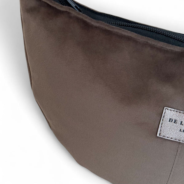 Diese kleine Umhängetasche aus der limitierten Night Edition der La Mur Line ist ein stilvoller Hingucker. Diese elegante Tasche ist aus taupefarbenem Samt gefertigt.