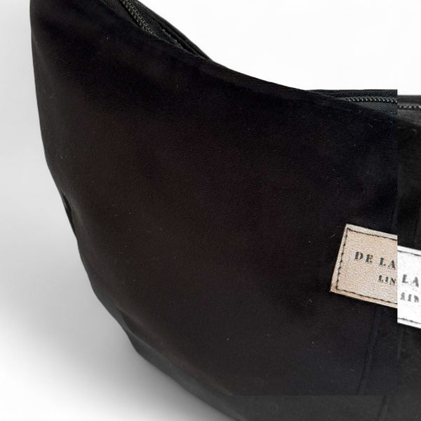 Diese kleine Umhängetasche aus der limitierten Night Edition der La Mur Line ist ein stilvoller Hingucker. Die elegante Tasche ist aus schwarzem Samt gefertigt.