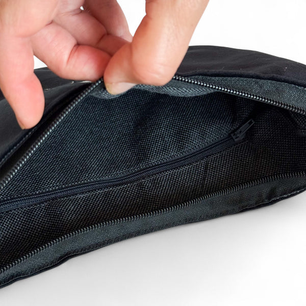 - In der Tasche befindet sich ein Staufach mit Reißverschluss.