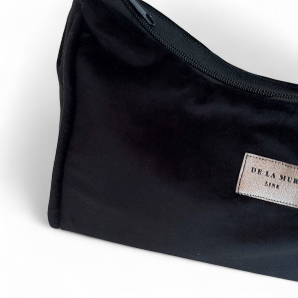 Diese kleine Umhängetasche aus der limitierten Night Edition der La Mur Line ist ein stilvoller Hingucker. Die elegante Tasche ist aus schwarzem Samt gefertigt.