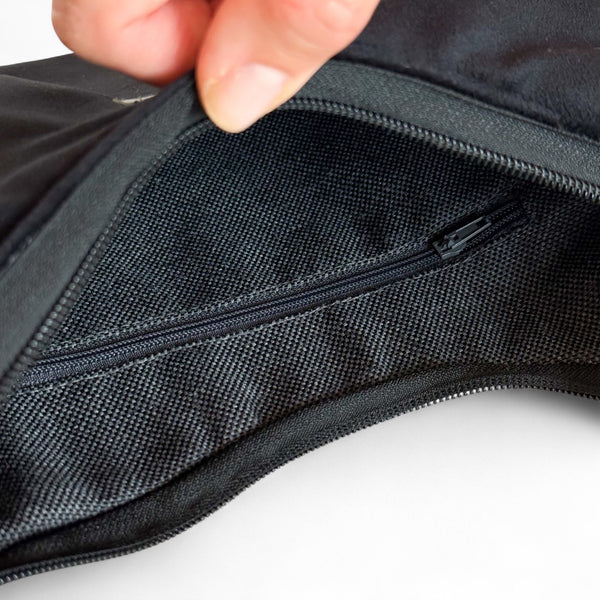 • In der Tasche befindet sich ein Staufach mit Reißverschluss.