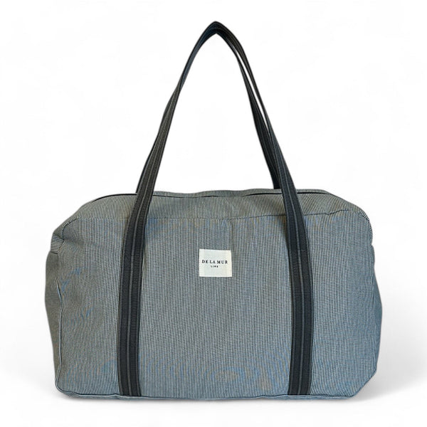 Diese robuste und geräumige Sporttasche aus der La Mur Line, auch Duffle Bag genannt, ist aus einem dicken, schlichten graugrünen Stoff gefertigt.