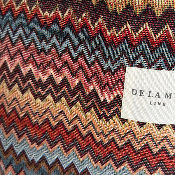 Diese Tasche aus der La Mur Line ist aus einem dicken Jacquardstoff gefertigt und hat ein farbenfrohes Zickzackmuster in warmen Farbtönen wie Rost, Ocker, Altrosa, Blau und Braun.